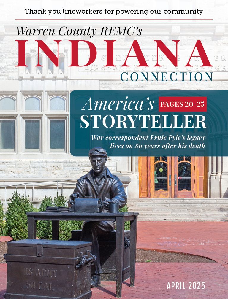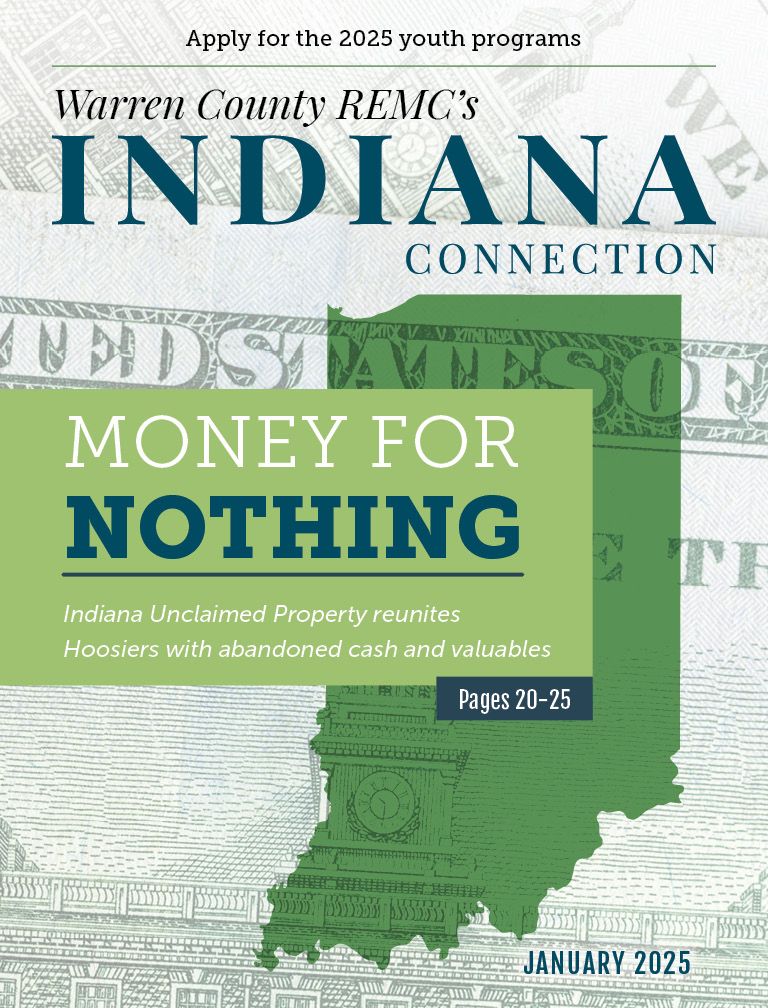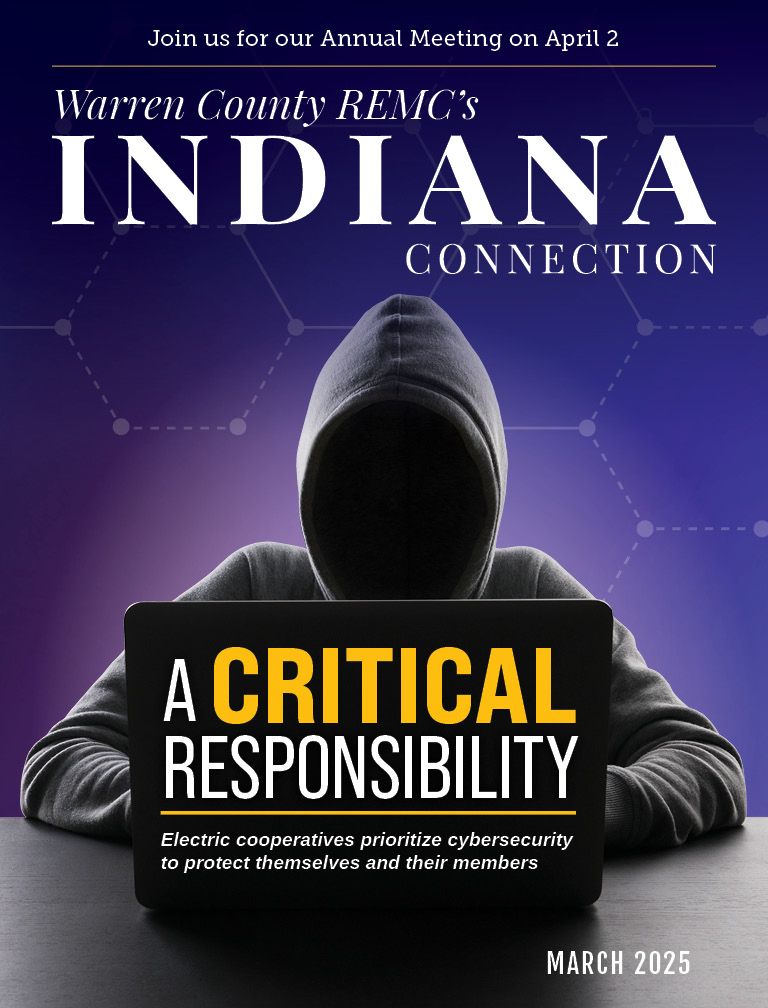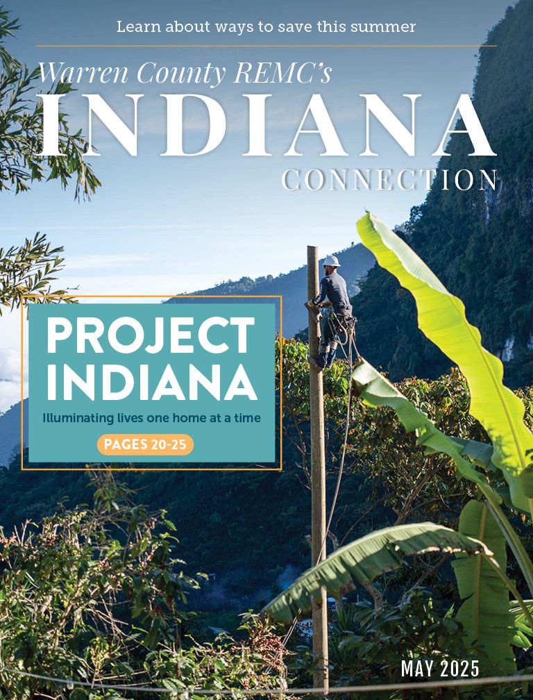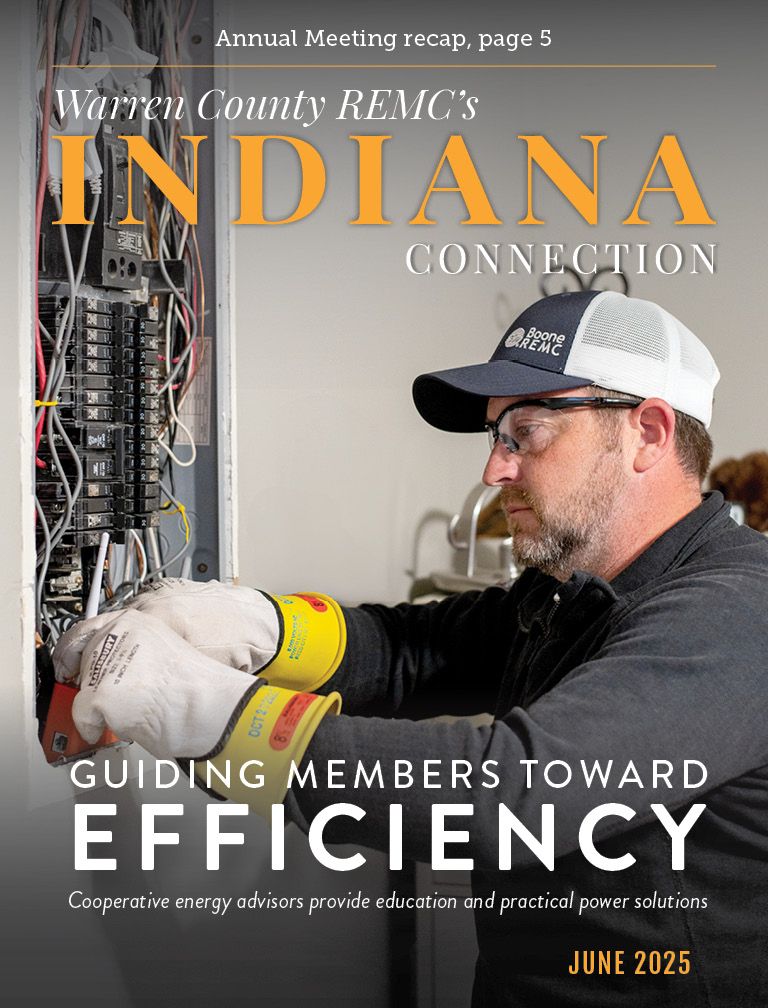 Arriving around the first of each month, Indiana Connection magazine is mailed to over 3,800 Warren County REMC members. The magazine features current events at Warren County, a note from the CEO, minutes from the latest board meeting, safety information, energy efficiency tips, news on the latest programs and much more.